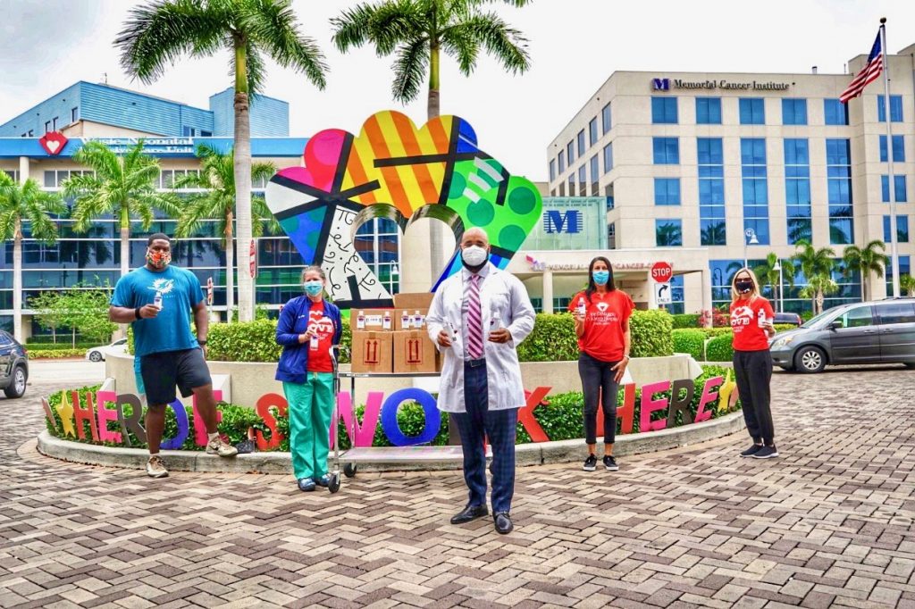 The Joe DiMaggio Children’s Hospital (Hollywood, FL) received personal protection equipment (masks) and hand sanitizer donated by NFL Super Bowl Champion Bryant McKinnie and ProKel Mobility’s Chief Executive Officer, Kelly Gonzalez, Jr.